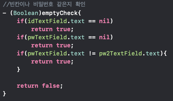 if( [self excuteLoginWithId: idTextField.text pw: pwTextField.text] ){