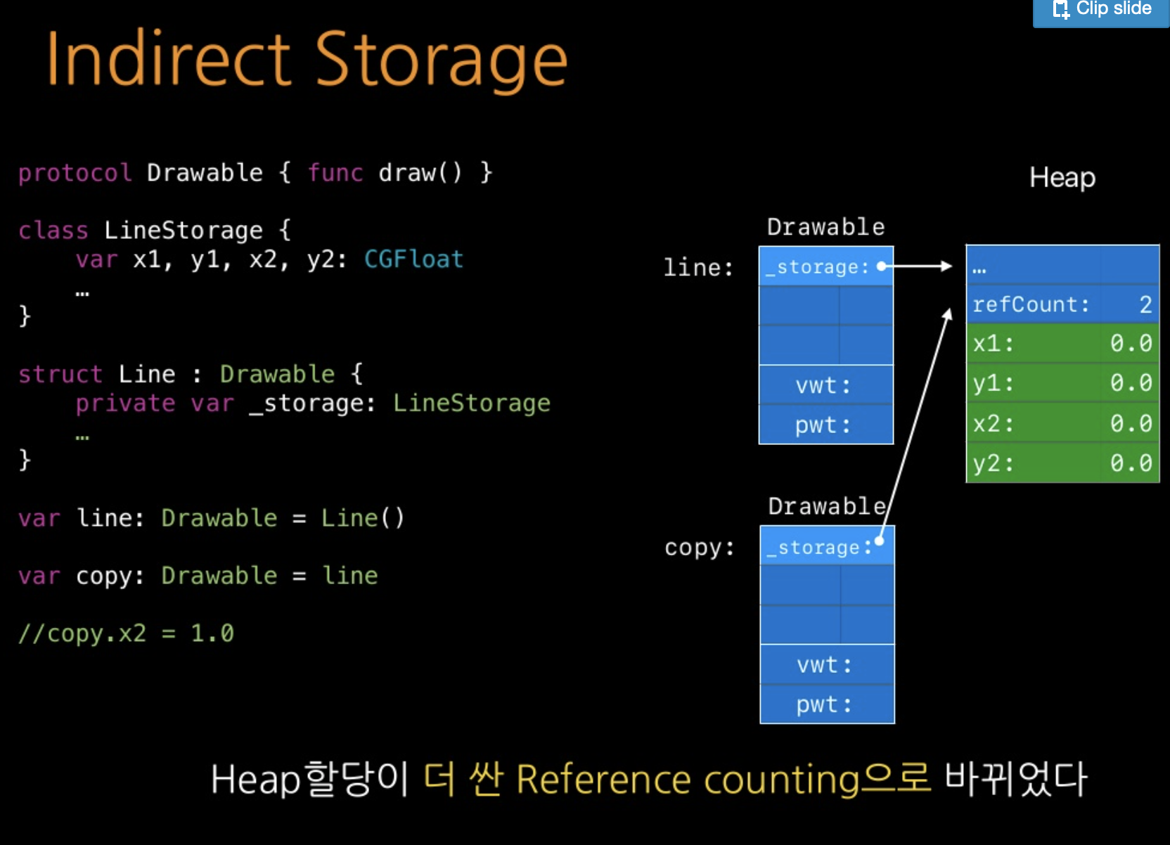 위에서 말한 Indirect 방식을 사용해보세요:) - Heap할당 대신 RC이용