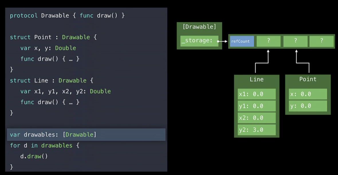 이런경우에는 같은 프로토콜을 채택하니까 Point, Line 모두 같은 배열에 넣을 수 있을 거에요