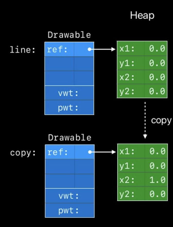 ➡️ 값복사는 Stack에 참조복사시 Heap 메모리 사용 - Struct