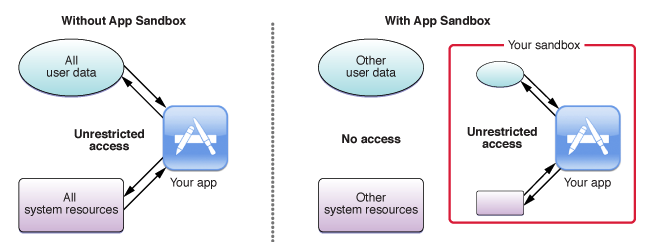 Sandbox를 사용하기때문에 앱과 시스템이 상호작용이 필요할 때