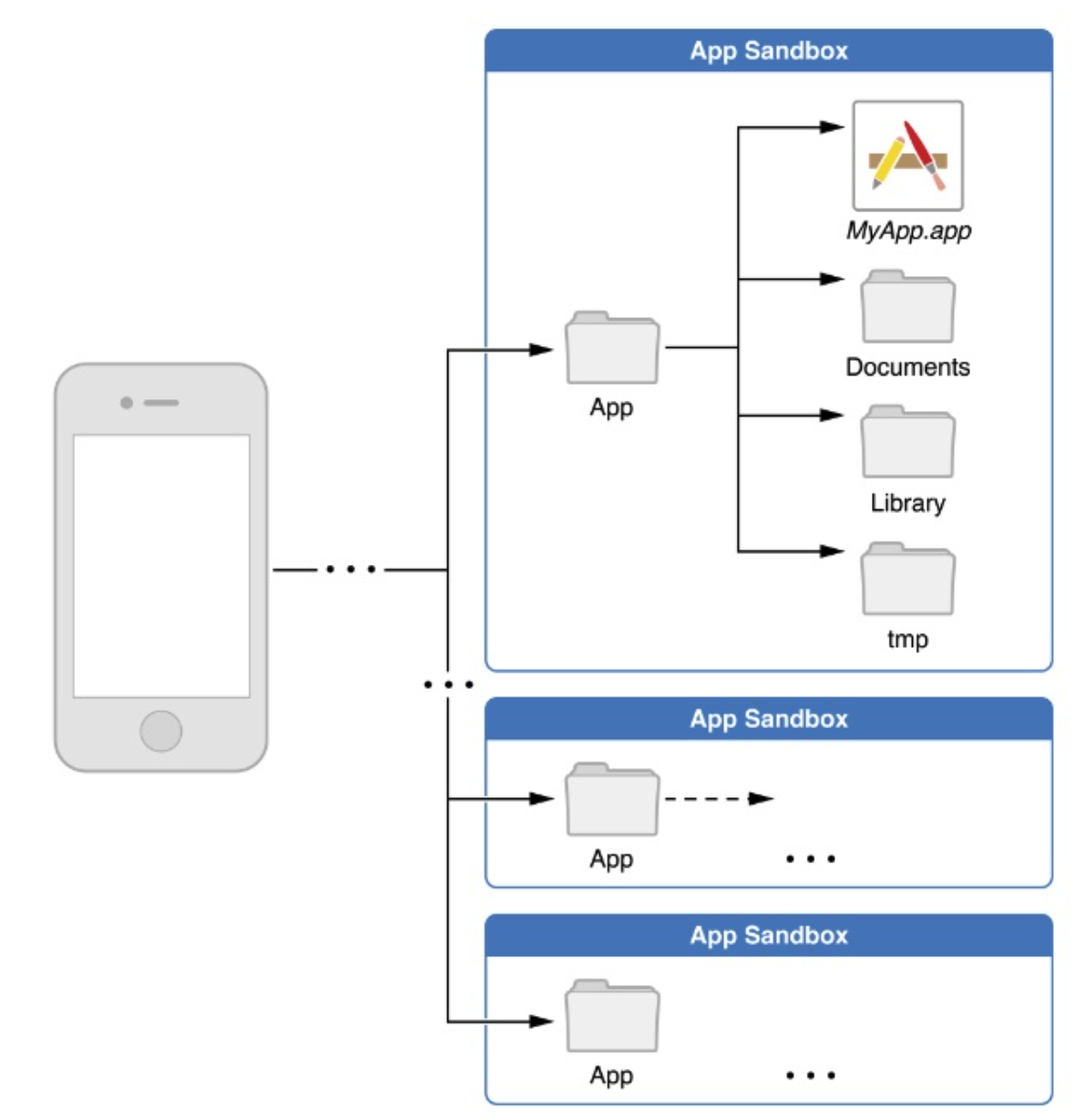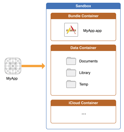 기본적으로 앱마다 별도의 파일을 생성하고 Sandbox안에서만 접근이 가능해요