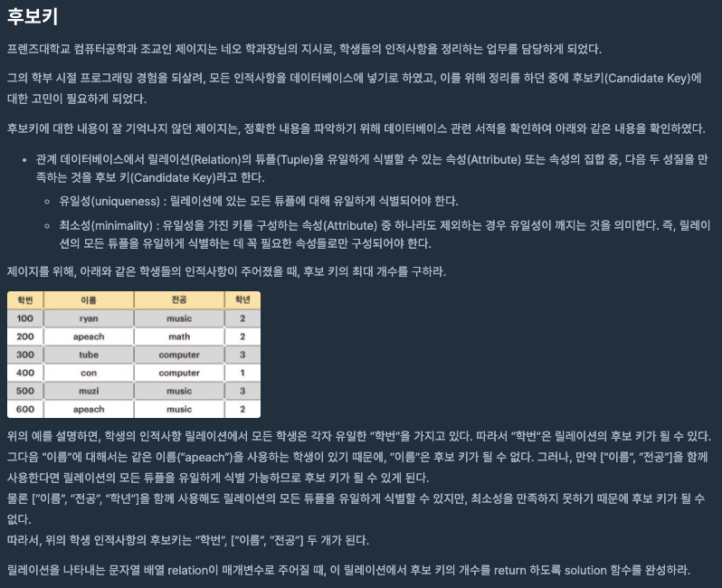 다 넣었을때 후보키라면 데이터 모두 구분할 수 있어야겠죠?