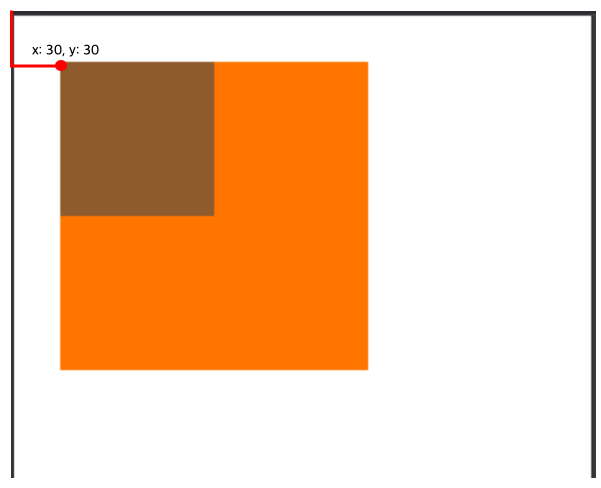 view1(주황색)은 rootView(흰색)기준으로 (30, 30)을 이동한 상태가 되요