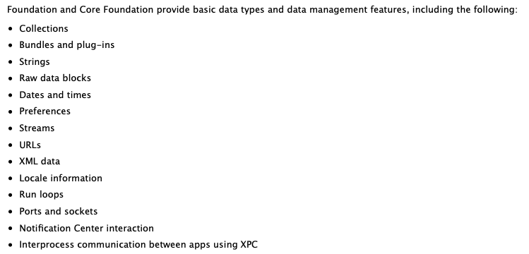 XML Parsing, Keychain, Notification Center, StoreKit, Security, GCD, 등 다양한 기능을 제공해줘요