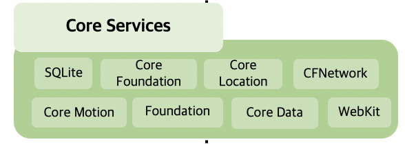 앱의 다양한 기능구현에 필요한 다양한 핵심프레임워크(UIKit, Foundation, CoreData, CoreAnimation…등)을 포함하는