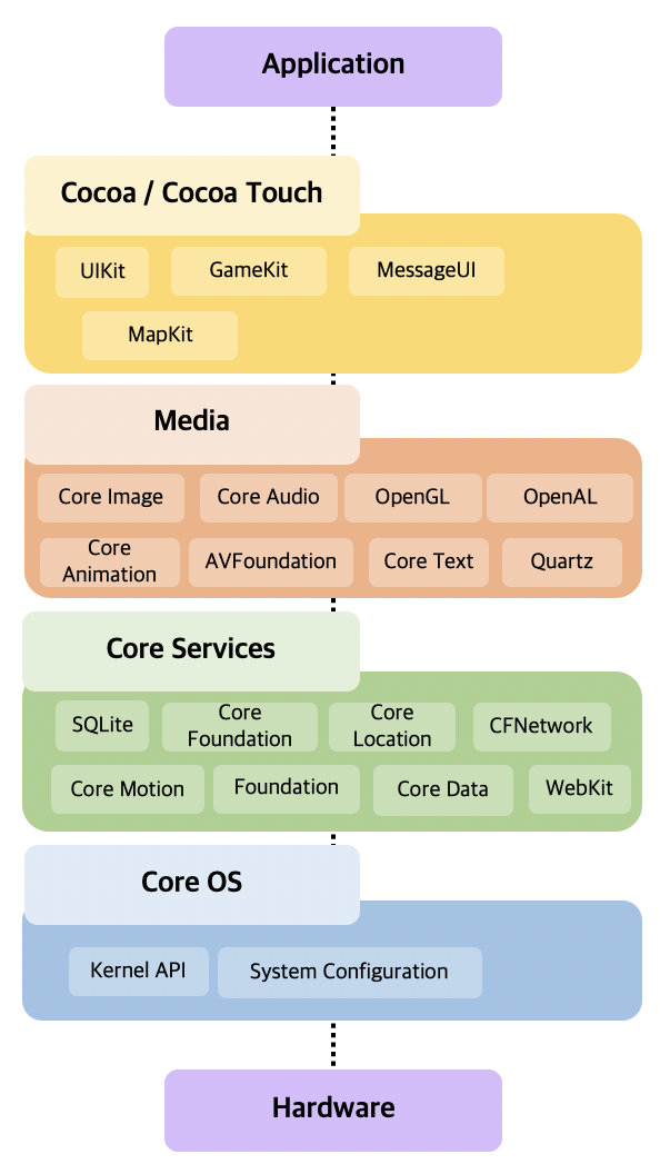 iOS의 기본적인 구조는 이렇게 이루어져있어요