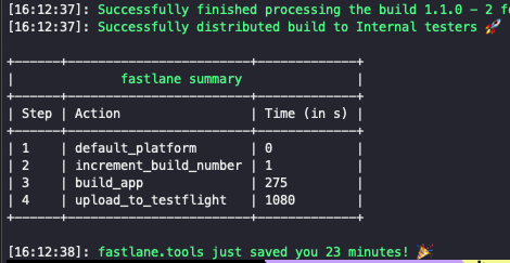 fastlane을 쓰지않았다면 저 로그대신 제가직접 들어가면서 확인해야해요...